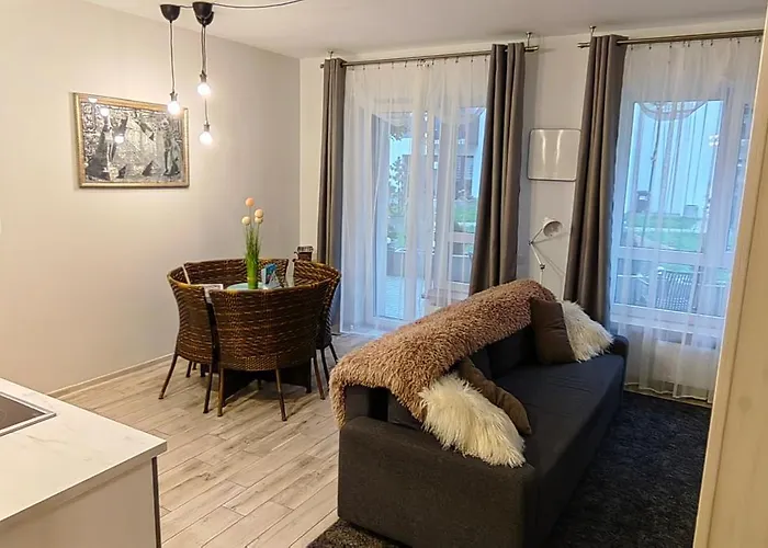 Die 30 m² großen Ozas Park Apartments Wilna liegt im Stadtviertel Verkiai von Wilna in 8 Gehminuten Entfernung vom Vichy Water Park. Diese Apartments verfügt über eine Terrasse, die einen Blick auf den Garten bietet.